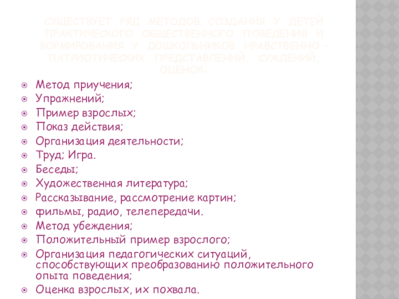 Организация педагогических ситуаций, способствующих преобразованию положительного опыта поведения;