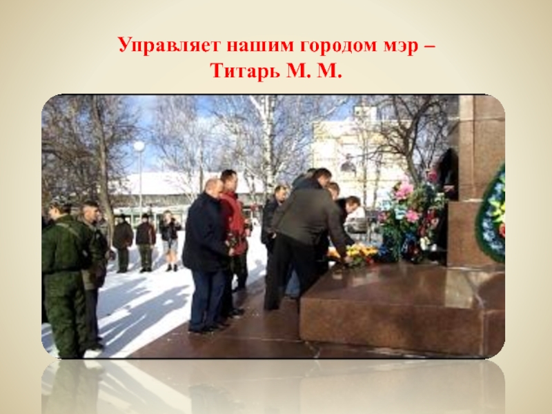 Слайд 7Управляет нашим городом мэр – Титарь М. М.