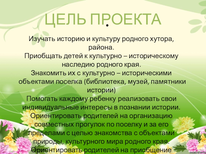 Формировать у дошкольников желание в дальнейшем самостоятельно получать и приобретать знания о родном хуторе.