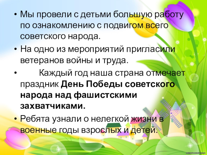 Слайд 22Мы провели с детьми большую работу по ознакомлению с подвигом всего