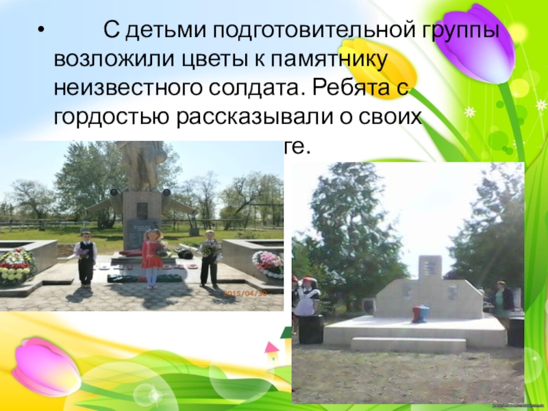 Слайд 24 С детьми подготовительной группы возложили цветы