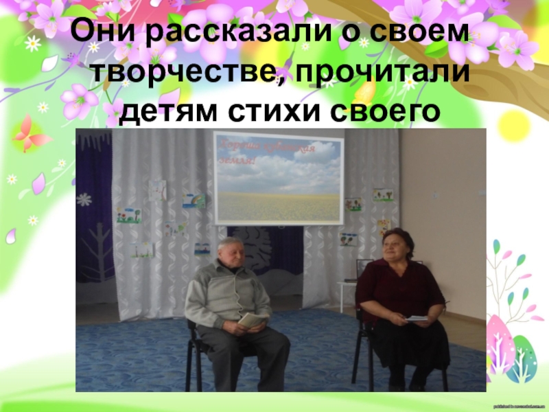 Слайд 15Они рассказали о своем творчестве, прочитали детям стихи своего сочинения.