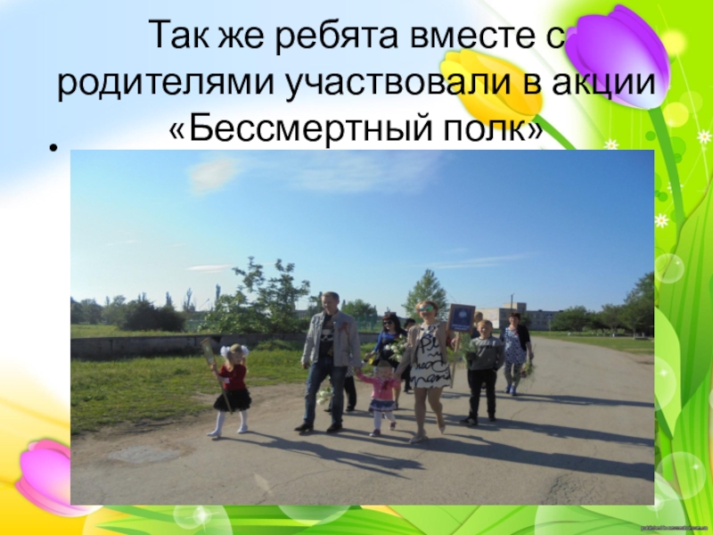 Слайд 25Так же ребята вместе с родителями участвовали в акции «Бессмертный полк»