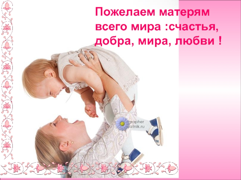 Слайд 42Пожелаем матерям всего мира :счастья, добра, мира, любви !
