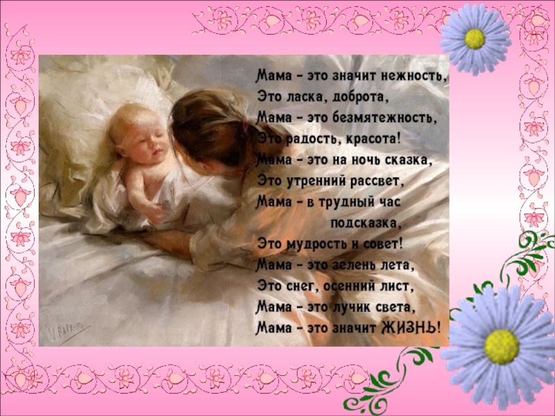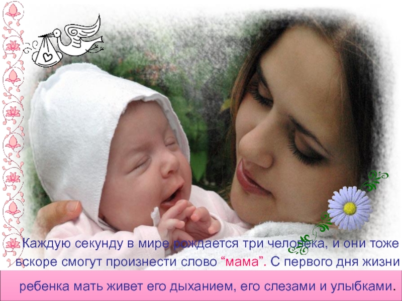 вскоре смогут произнести слово “мама”. С первого дня жизни ребенка мать живет его дыханием, его слезами и улыбками.
