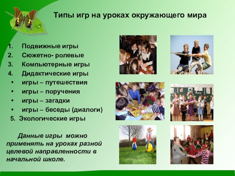 Данные игры можно применять на уроках разной целевой направленности в начальной школе.