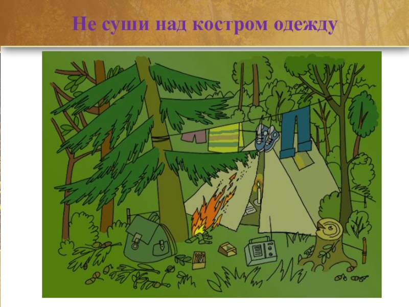 Слайд 9Не суши над костром одежду