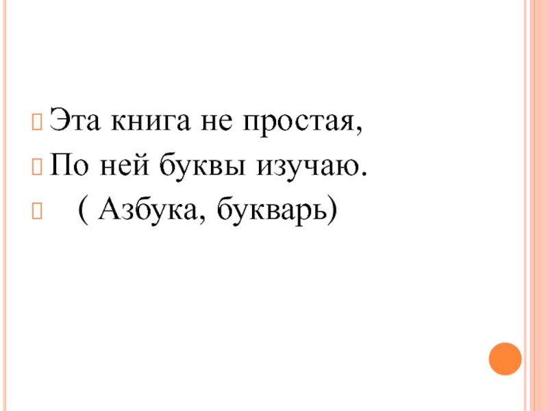 Эта книга не простая, По ней буквы изучаю.  ( Азбука, букварь)