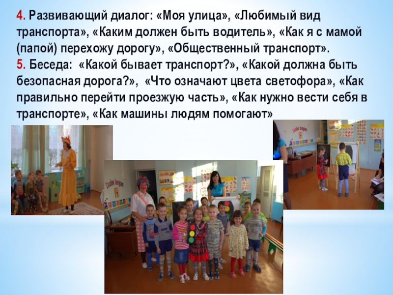 Слайд 94. Развивающий диалог: «Моя улица», «Любимый вид транспорта», «Каким должен быть