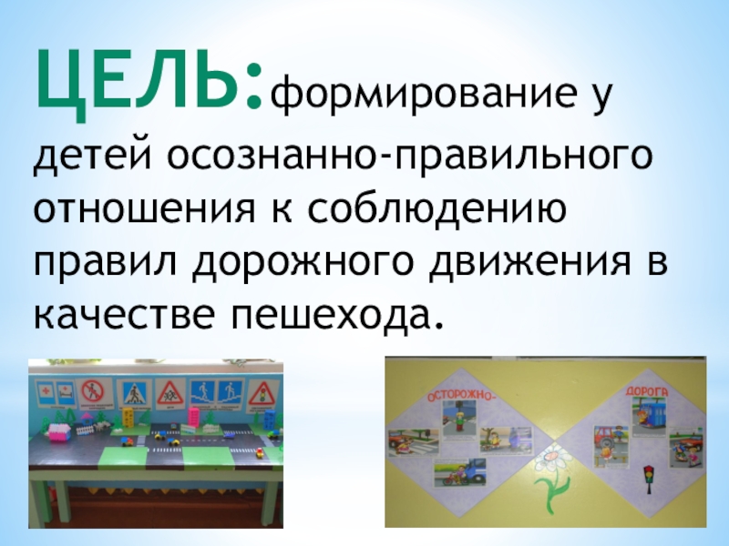 Слайд 4цЕЛЬ:формирование у детей осознанно-правильного отношения к соблюдению правил дорожного движения в