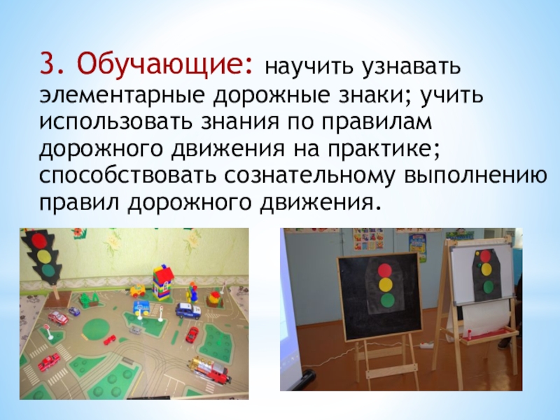 Слайд 63. Обучающие: научить узнавать элементарные дорожные знаки; учить использовать знания по
