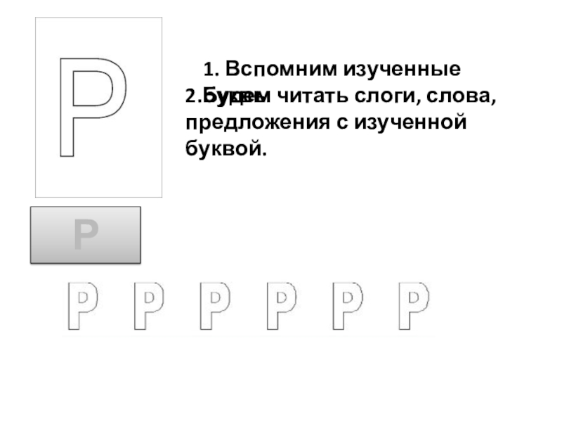 Р1. Вспомним изученные буквы2.Будем читать слоги, слова, предложения с изученной буквой.