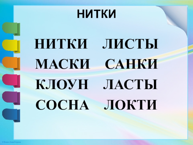НИТКИНИТКИ  ЛИСТЫМАСКИ  САНКИКЛОУН  ЛАСТЫСОСНА  ЛОКТИ