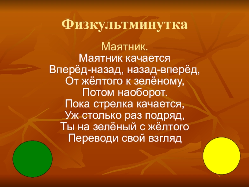 ![Презентация по обучению грамоте 1 класс на тему Буква т- буква согласных звуков [т][т']. Гармония ФизкультминуткаМаятник.Маятник качаетсяВперёд-назад, назад-вперёд,От жёлтого к зелёному,Потом наоборот.Пока стрелка качается,Уж столько раз ФизкультминуткаМаятник.Маятник качаетсяВперёд-назад, назад-вперёд,От жёлтого к зелёному,Потом наоборот.Пока стрелка качается,Уж столько раз подряд,Ты на зелёный с жёлтогоПереводи свой](/img/tmb/5/478746/7d4e0ace228b007900597e691aa92eb0-800x.jpg)