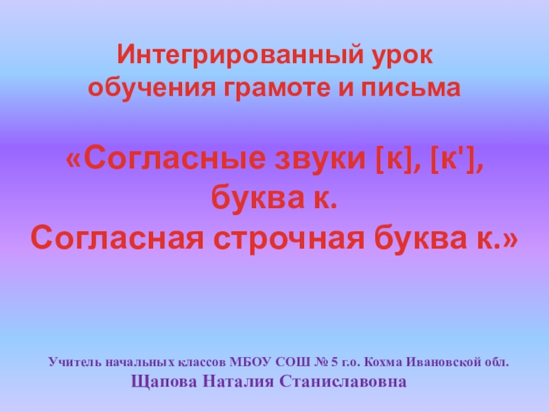 Учитель начальных классов МБОУ СОШ № 5 г.о. Кохма Ивановской обл.