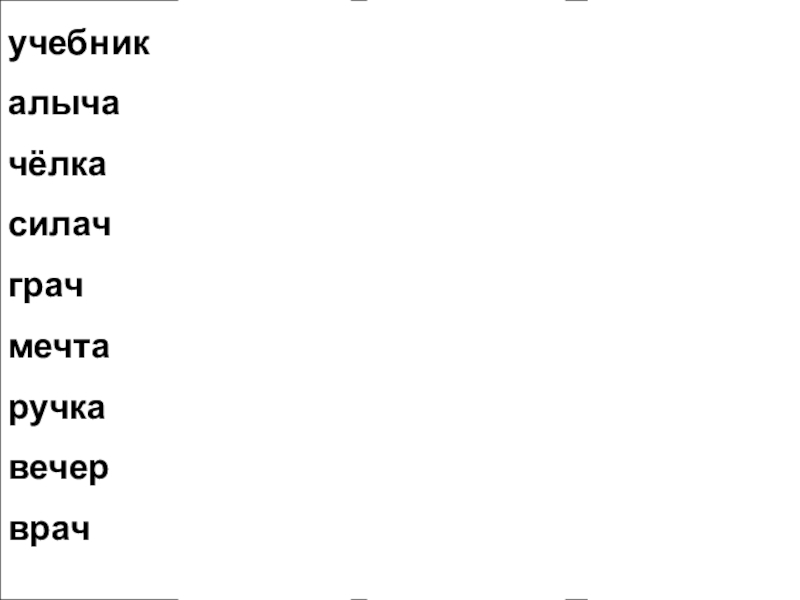 пень соль карась пальма рысь день Ольга тетрадь пять июнь апрель январь царь петь король редька конь осень якорь деньги ель огонь рояль голубь гусь олень окунь морковь тень Игорь альбом апельсин июль букварь кальмар осьминог лень шмель тополь мебель эльф пальто сирень карусель