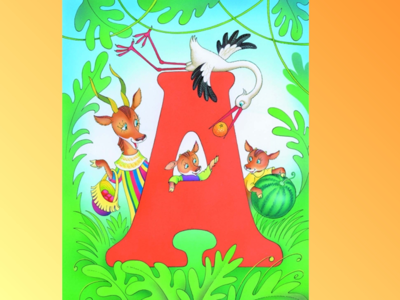 она. — Здесь кто-то живёт!» Возле домика она заметила ягодку и опять сказала: «А-а! Здесь что-то растёт!» Вечером антилопа попыталась нарисовать домик и ягодку на песке, чтобы рассказать о них своим детям — маленьким антилопам. Они посмотрели на рисунки и тоже сказали: «Ааа! Вот что есть на острове!» А потом назвали эти значки буквой А. Значок домик — большой буквой А, а значок ягодку — маленькой а. И всё!