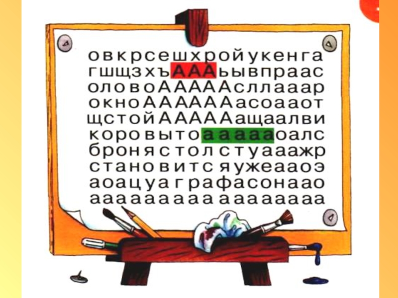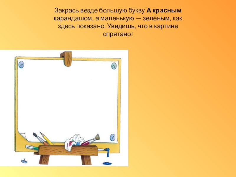 Слайд 19Закрась везде большую букву А красным карандашом, а маленькую — зелёным, как здесь