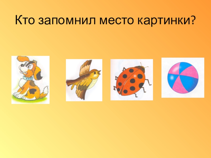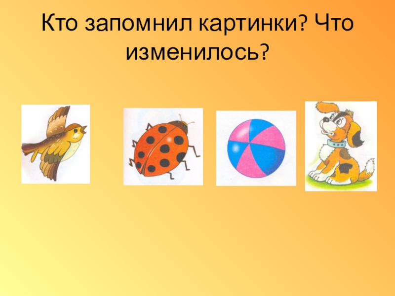 Слайд 12Кто запомнил картинки? Что изменилось?