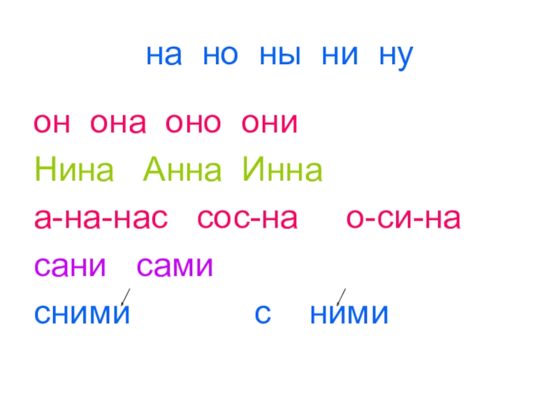 на но ны ни ну он она оно ониНина  Анна Иннаа-на-нас  сос-на   о-си-насани