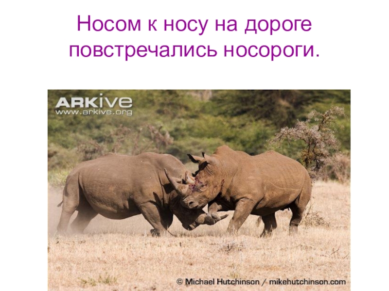 Слайд 5Носом к носу на дороге повстречались носороги.
