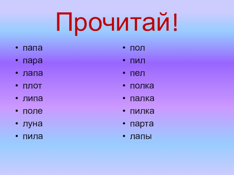 Прочитай!папапаралапаплотлипаполелунапилапол пил пелполкапалкапилкапарталапы