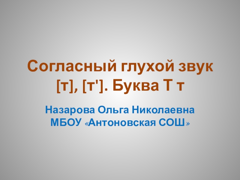 Согласный глухой звук [т], [т']. Буква Т тНазарова Ольга НиколаевнаМБОУ «Антоновская СОШ»