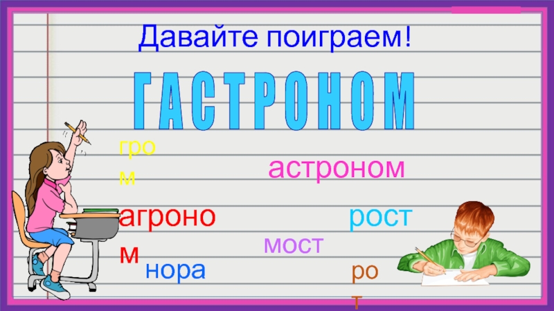 Это сайт презентаций, где можно хранить и обмениваться своими презентациями, докладами, проектами, шаблонами в формате PowerPoint с другими пользователями. Мы помогаем школьникам, студентам, учителям, преподавателям хранить и обмениваться учебными материалами.