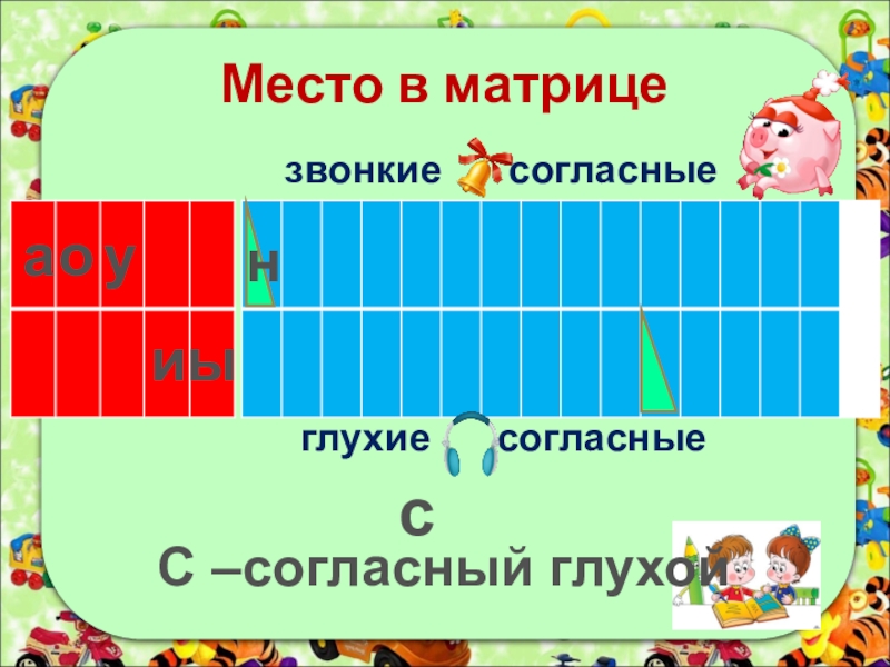 Место в матрицеаоиыузвонкие   согласныеглухие   согласныеС –согласный глухойнс