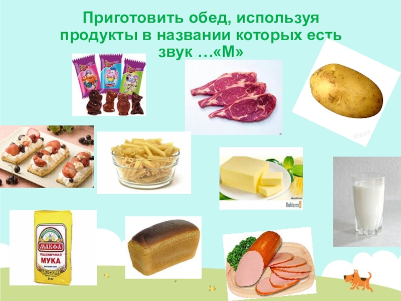 Слайд 6Приготовить обед, используя продукты в названии которых есть звук …«М»