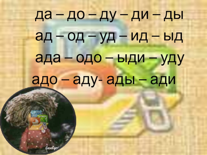 да – до – ду – ди – ды 	ад – од – уд – ид –
