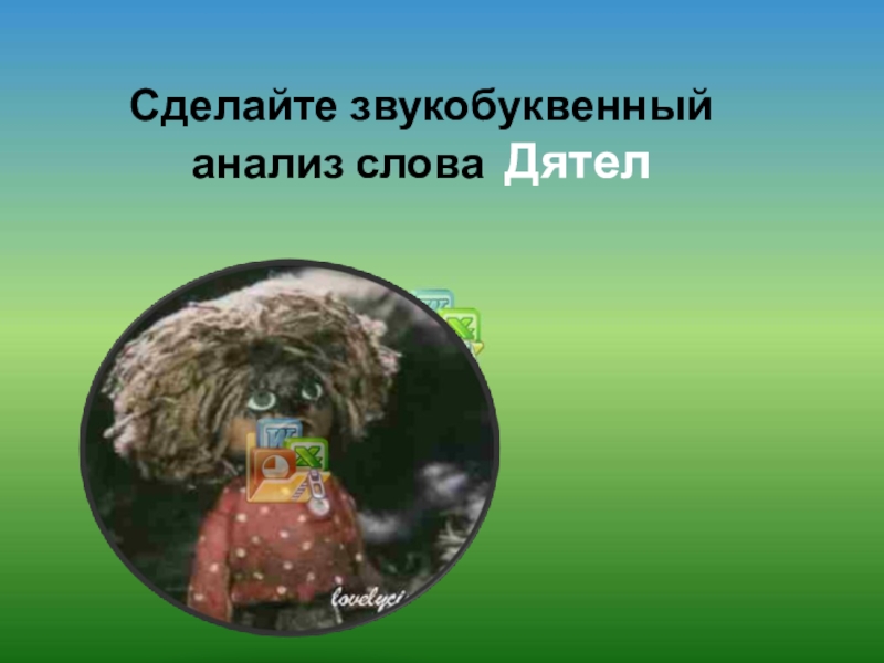 Слайд 4Сделайте звукобуквенный анализ слова Дятел
