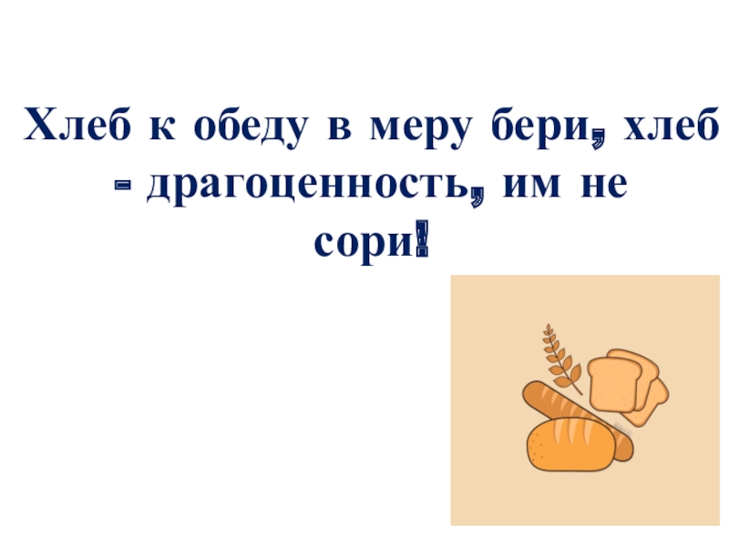 Слайд 19Хлеб к обеду в меру бери, хлеб - драгоценность, им не