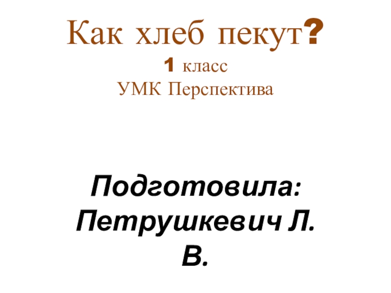 Как хлеб пекут? 1 класс УМК ПерспективаПодготовила: Петрушкевич Л.В.