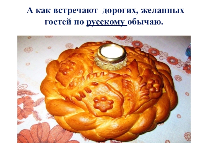 Слайд 2 А как встречают дорогих, желанных гостей по русскому обычаю.