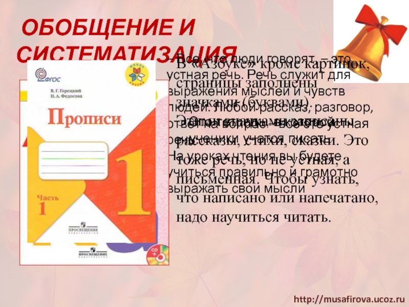Этими значками записаны рассказы, стихи, сказки. Это тоже речь, но не устная, а письменная. Чтобы узнать, что написано или напечатано, надо научиться читать.