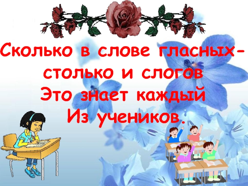 Сколько в слове гласных- столько и слоговЭто знает каждый Из учеников.