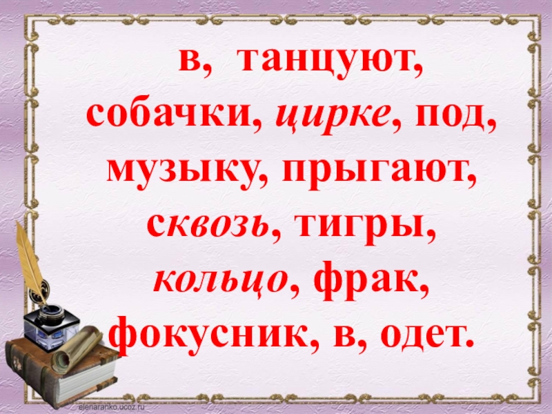 Слайд 17 в, танцуют, собачки, цирке, под, музыку, прыгают, сквозь, тигры,