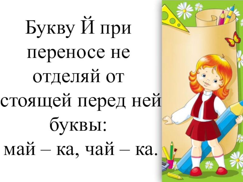Слайд 5Букву Й при переносе не отделяй от стоящей перед ней буквы: