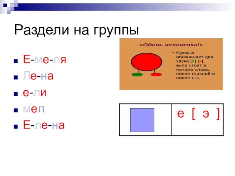 Раздели на группыЕ-ме-ляЛе-нае-лимелЕ-ле-на
