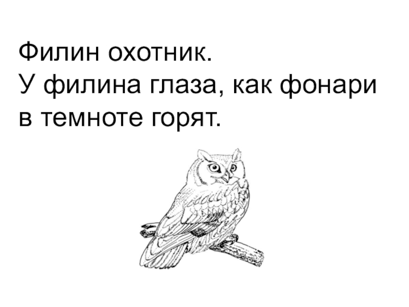 Филин охотник.У филина глаза, как фонари в темноте горят.