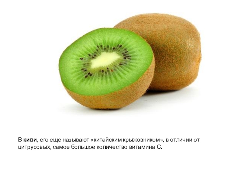 Слайд 5В киви, его еще называют «китайским крыжовником», в отличии от цитрусовых, самое