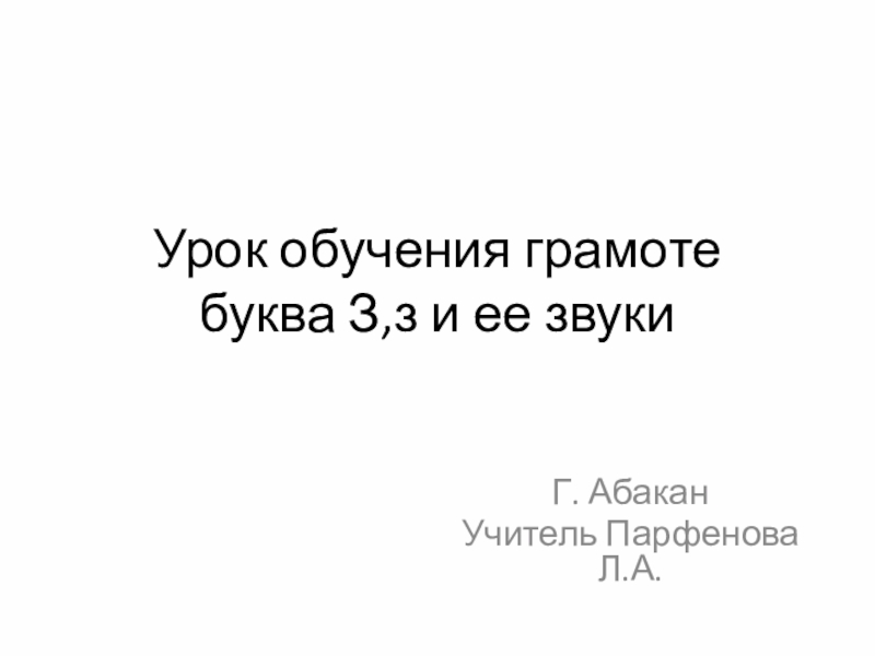 Урок обучения грамоте буква З,з и ее звукиГ. Абакан Учитель Парфенова Л.А.