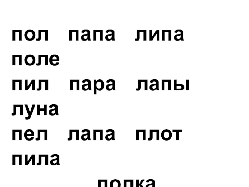 пол  папа  липа   полепил  пара  лапы  лунапел  лапа