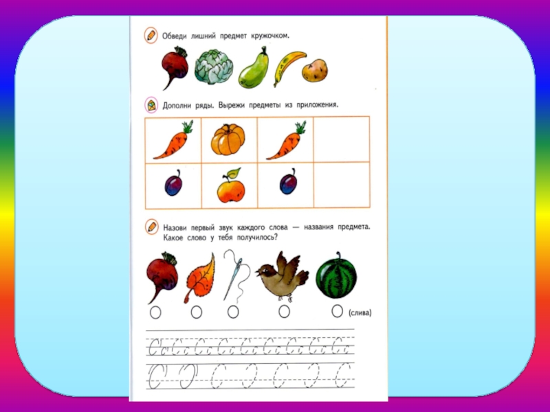 Презентация, доклад по обучению грамоте на тему Занятие 1. Осенние странички в рамках курса по подготовке детей к школе (по пособию Н.А.Федосовой От слова к букве)
