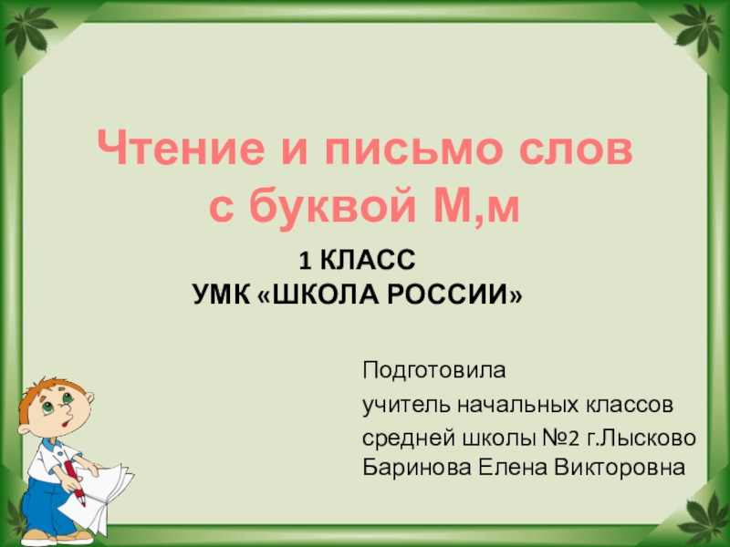 средней школы №2 г.Лысково Баринова Елена Викторовна