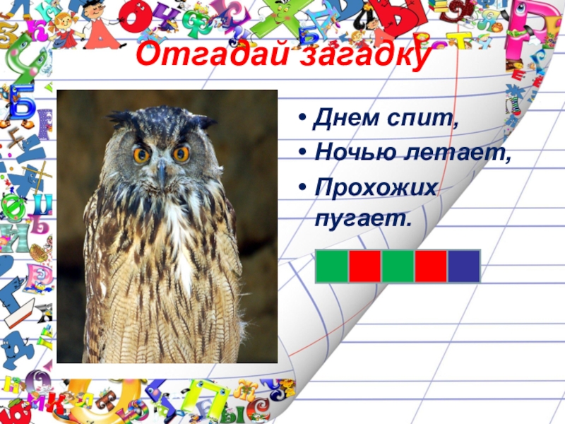 Отгадай загадкуДнем спит,Ночью летает,Прохожих пугает.