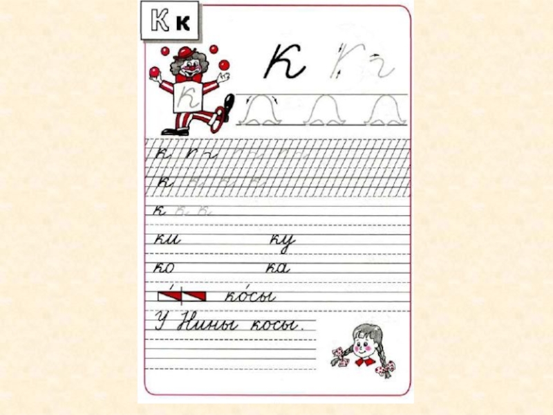 Презентация, доклад по обучению грамоте на тему :Буква К,к(1класс)
