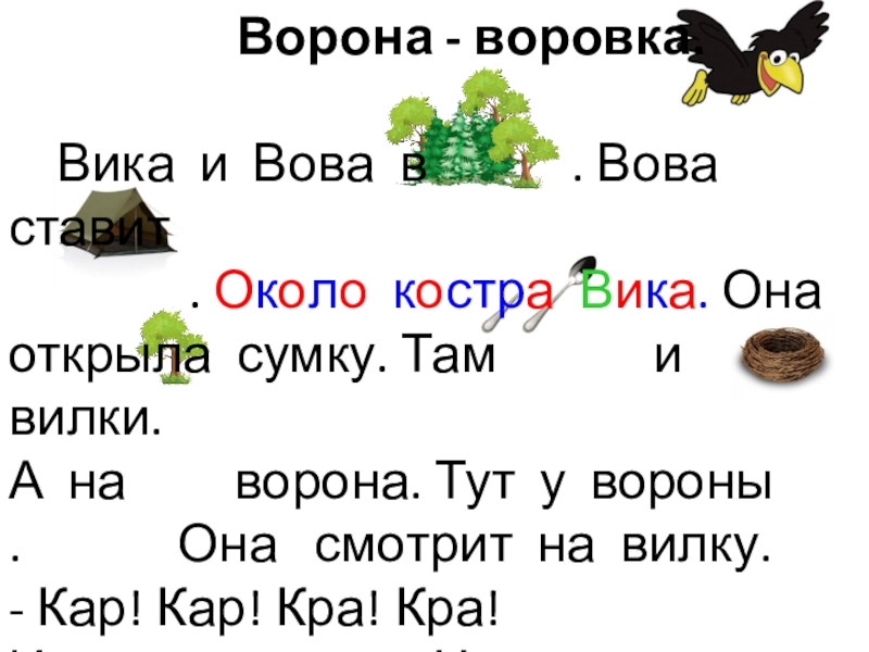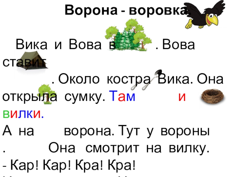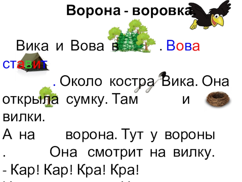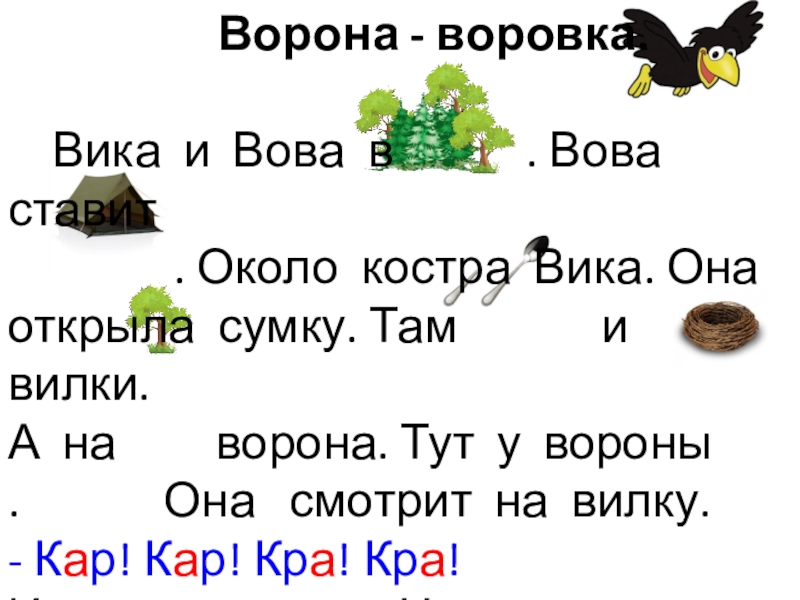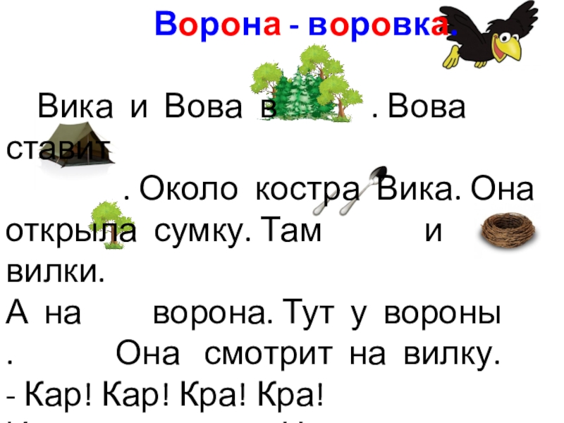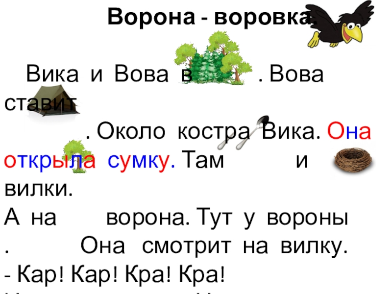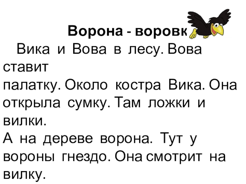 А на ворона. Тут у вороны . Она смотрит на вилку.