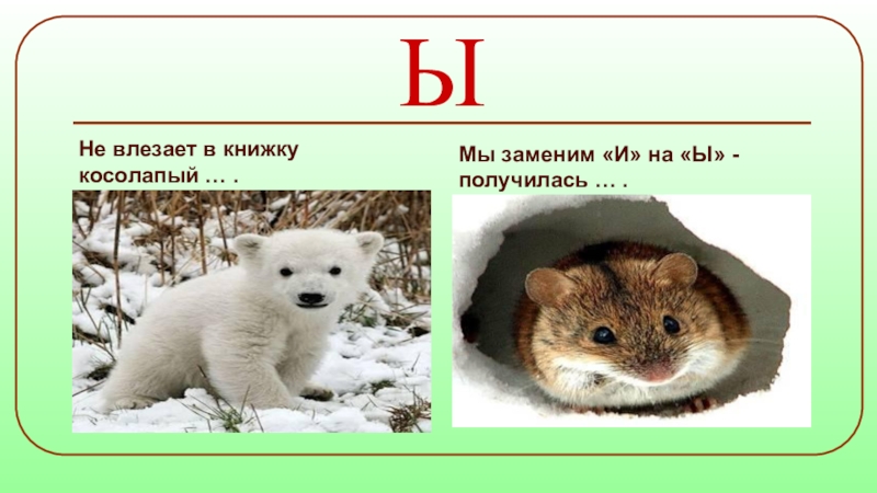 ЫМы заменим «И» на «Ы» - получилась … .Не влезает в книжку косолапый … .